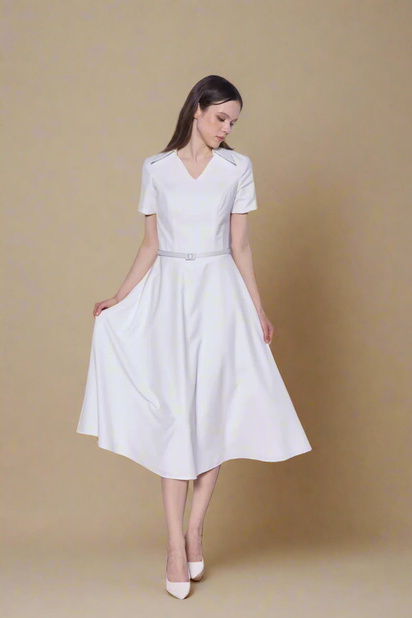 Pleated Midi Dress in White Pleated Midi Dress in White